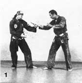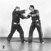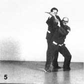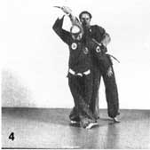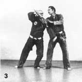 jabs to the eyes (2), then applies a heel strike to the groin (3). Controlling the attacker by twisting the arm, Swiftdeer steps in front of the opponent (4), grabs the